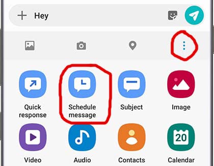 - Tap Schedule a message: Before tapping this icon, you need to tap the three vertical dots icon in the upper right.